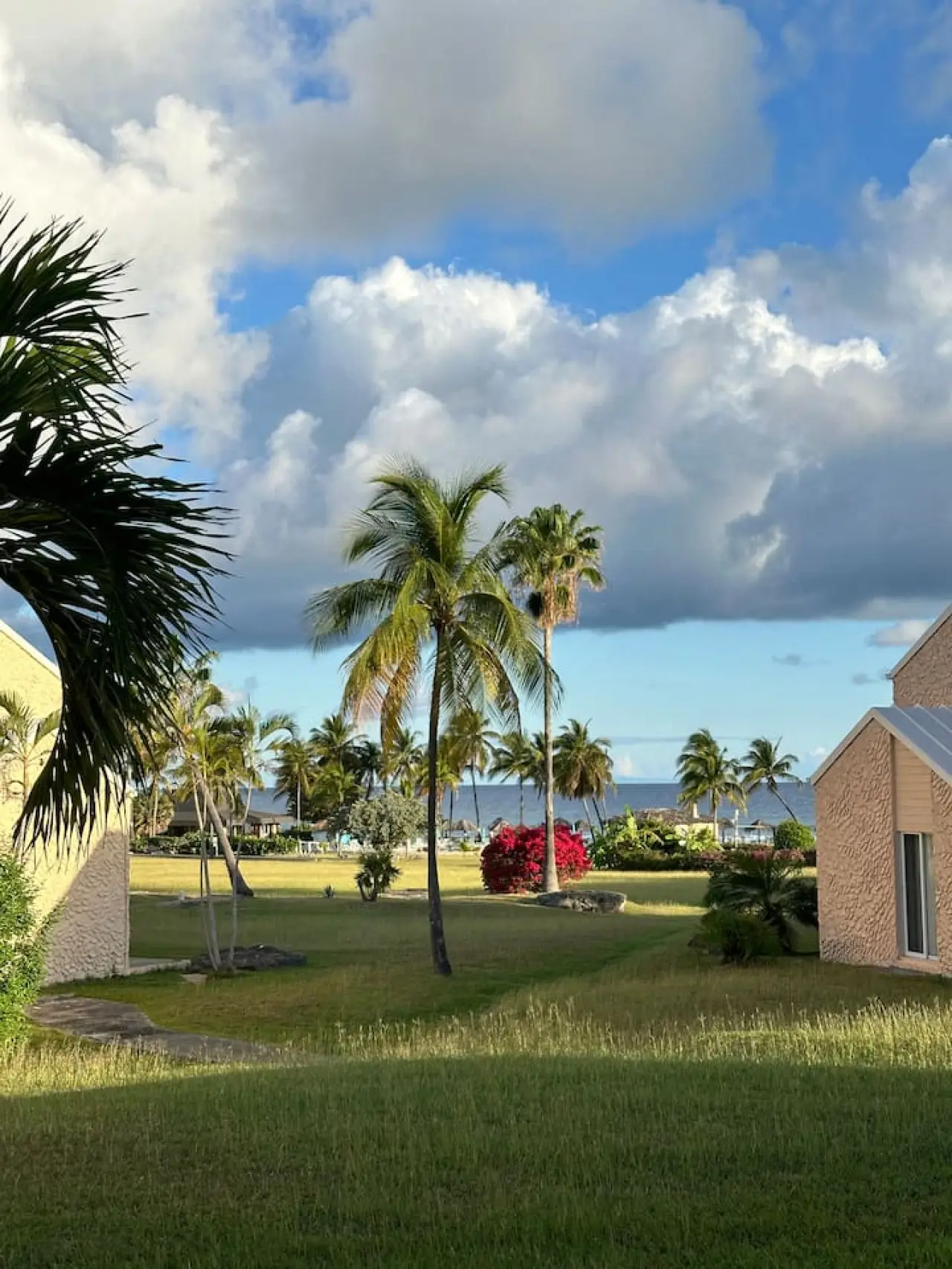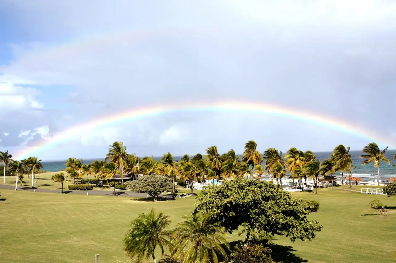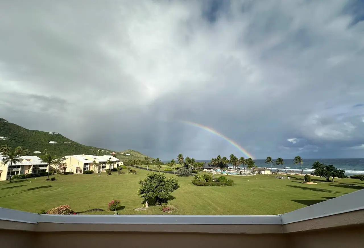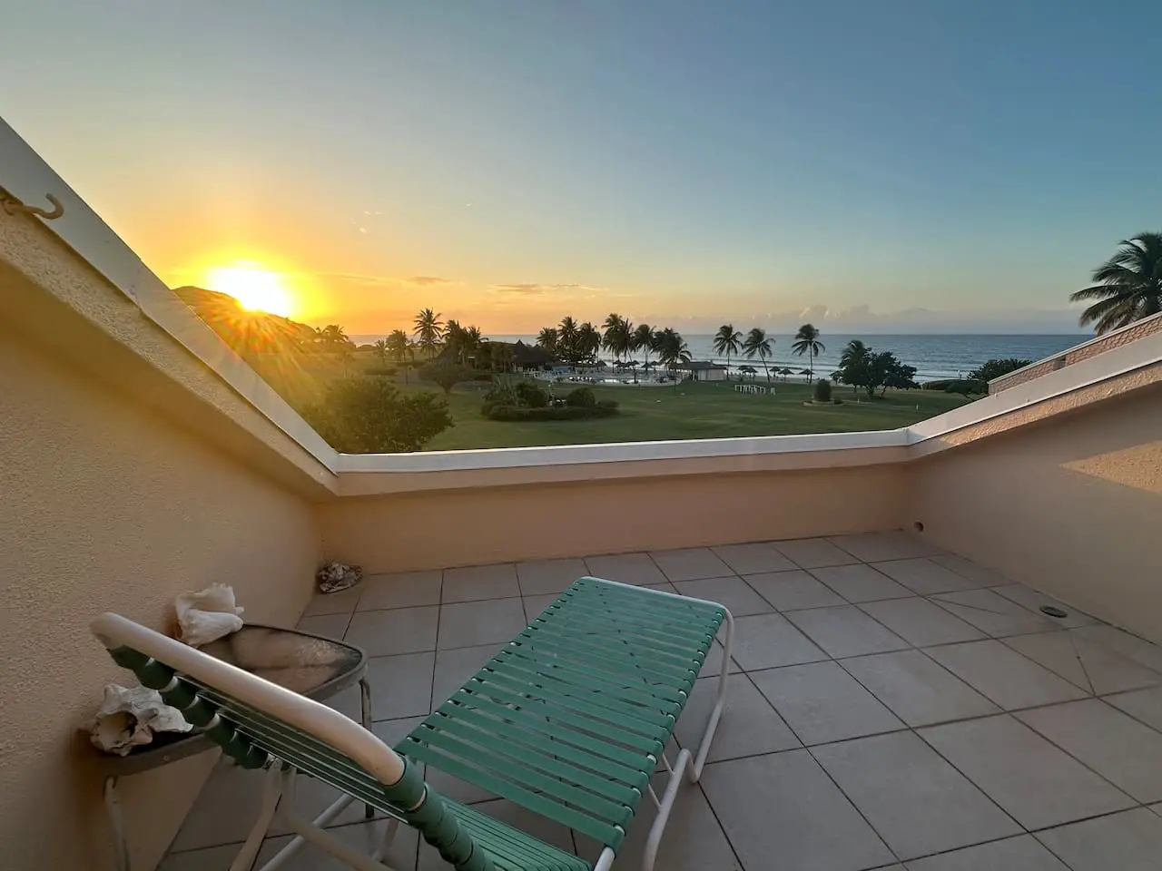 A stately entrance is gateway to incredible grounds, including tennis courts, large pool and our beautiful split level, private beach-front condo. Everything for the whole family or romantic get away at one of the best place on St Croix. Fall asleep to the sound of the waves, in any bedroom. Relax under a starlit sky or morning rainbow, from two patios. Cook up fresh fish in a complete kitchen or skip down to the beach shack bar and grill for one of the islands amazing drinks and food.