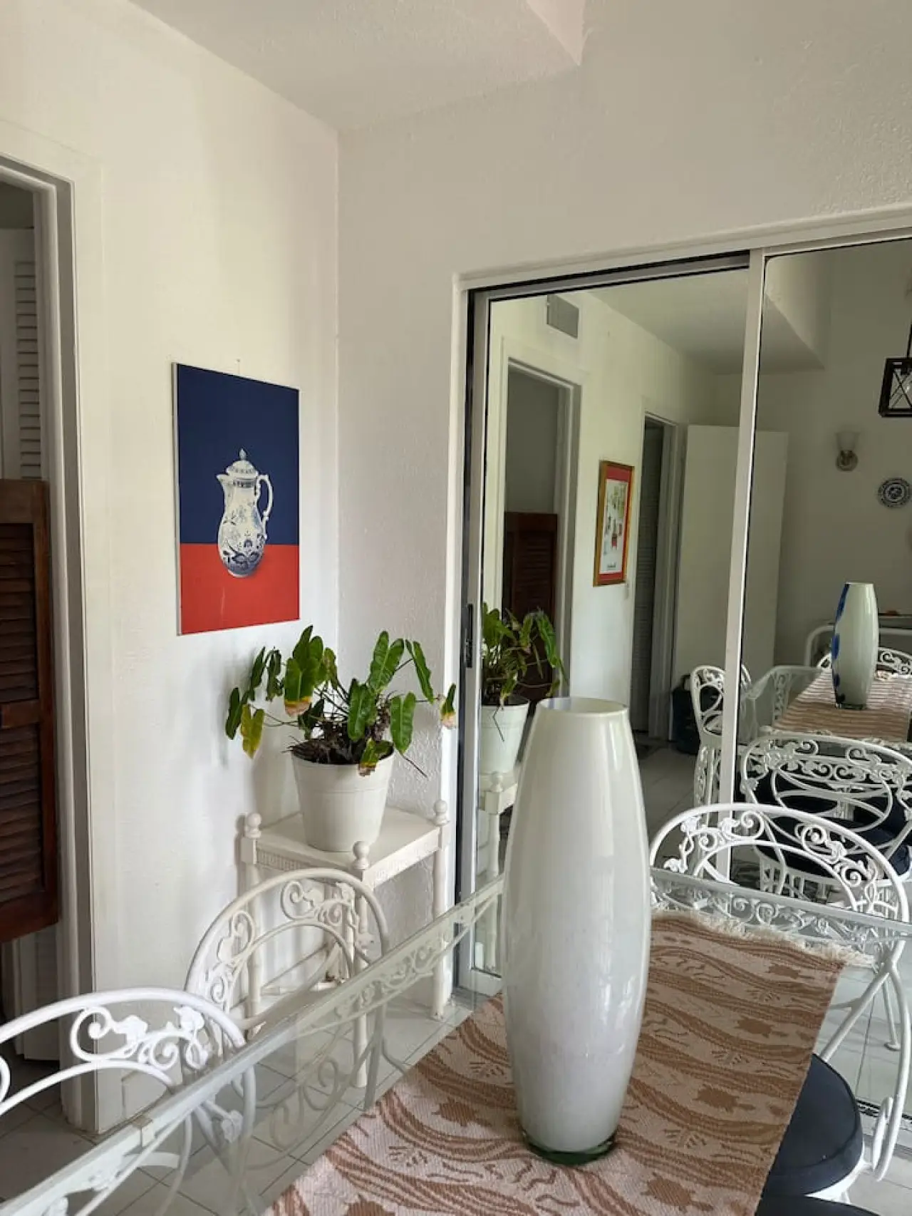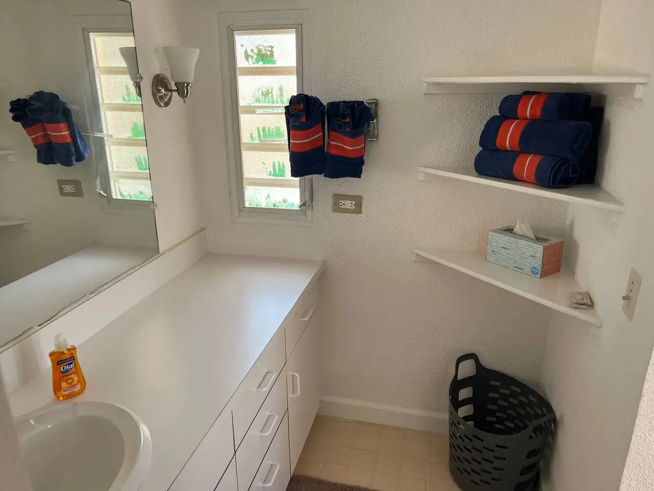 The washer and dryer is in a closet as you come into the kitchen, a smaller units but washes and dries very well. Literally steps away is the sea and private beach with lounge chairs and palapas. Swimming and snorkelling in the warm sea or large pool, feels like being in a spa. Relax on the random hammocks on the beach during the day or stargazing at night. The Sunny Beach Shack bar and grill makes delicious food and specially island drinks. Closed Aug. to Sept. Practice your game on our putting green to play later at the 18 hole Robert Trent Jones Carembola Golf and Country Club . Gentle Winds is centrally located and close to world class restaurants and outdoor activities. Kayak the Bioluminescent Bay which is within walking distance.Drive down the North Shore road to Cane Bay for a beach dive or beach day with lunch. Stay for Sunset! There is so much to do on friendly St. Croix. Enjoy island hospitality and a laid back atmosphere. We hope you choose to stay with us and make Larimar your yearly retreat and “home away from home.”