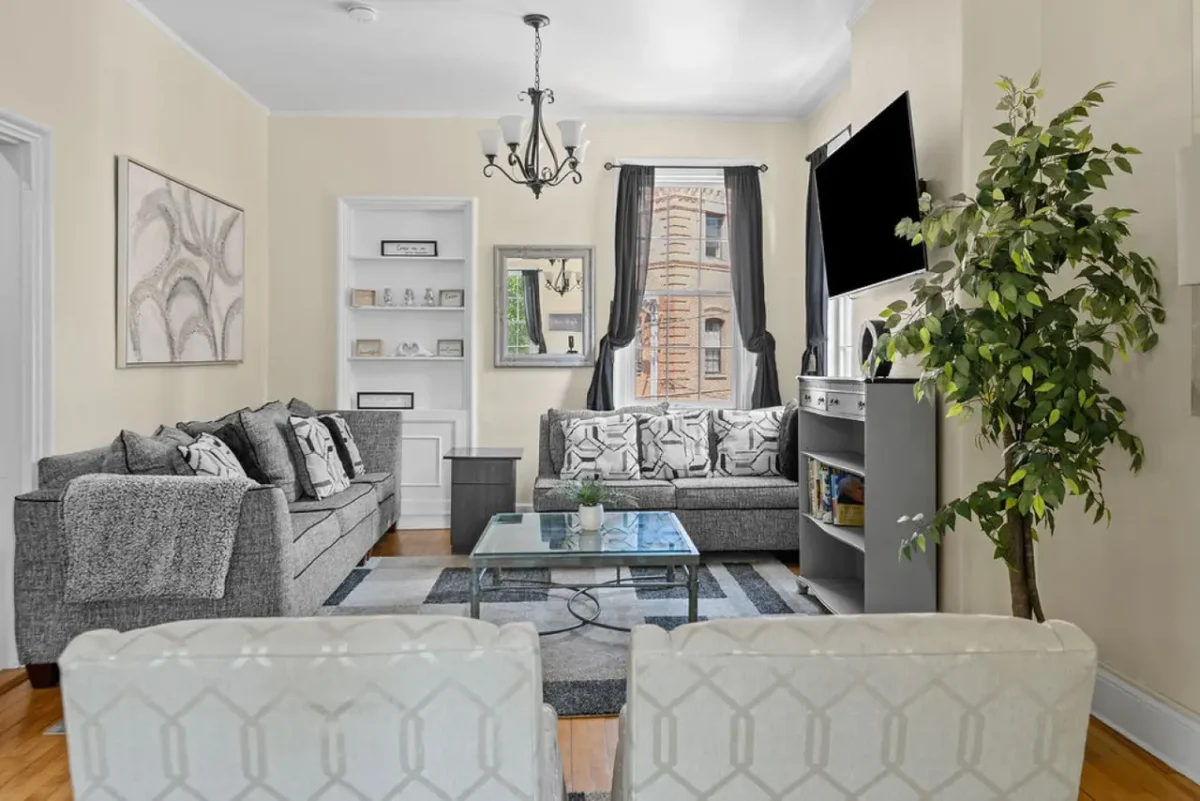 Overview Cancellation Policy This meticulously restored mid-1800s townhome seamlessly blends historic charm with modern luxury. Enjoy an open-concept living space featuring a brand new fully …