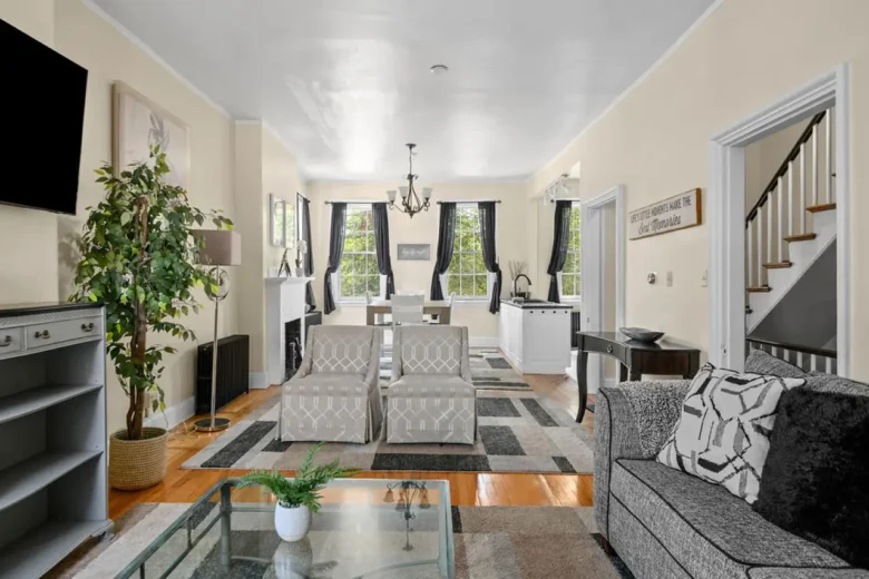 Overview Cancellation Policy This meticulously restored mid-1800s townhome seamlessly blends historic charm with modern luxury. Enjoy an open-concept living space featuring a brand new fully …