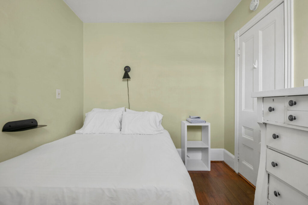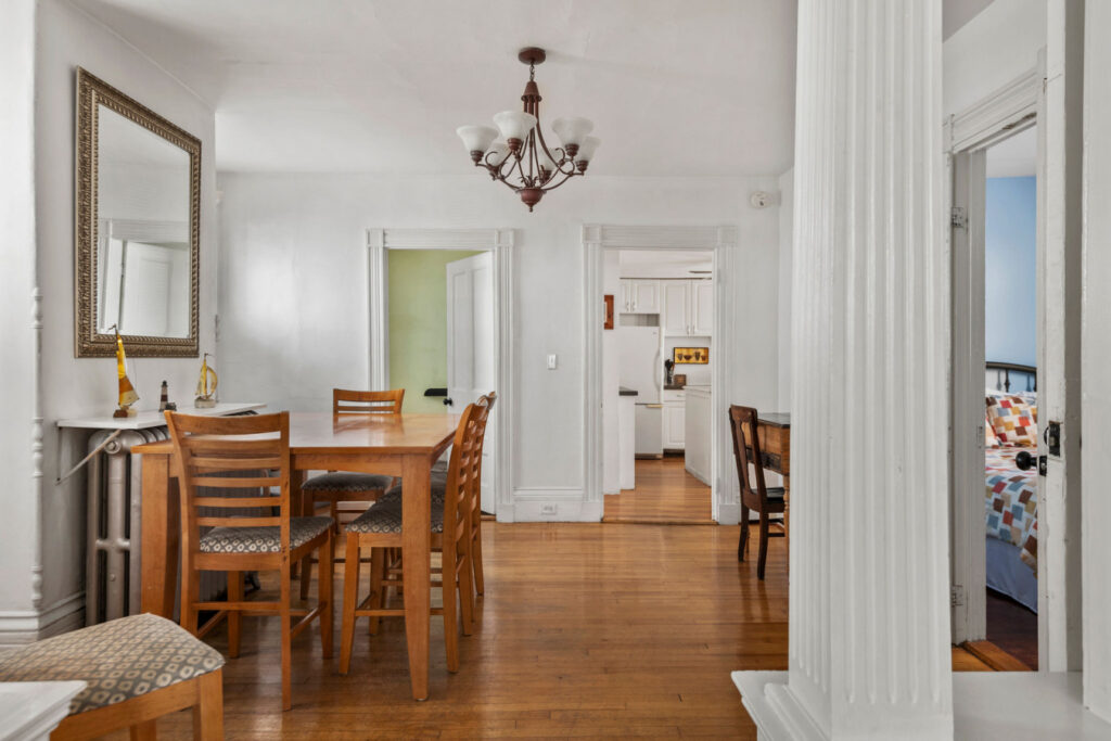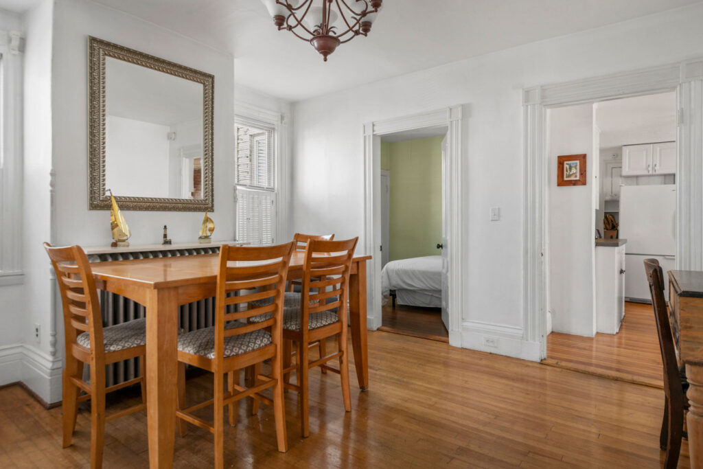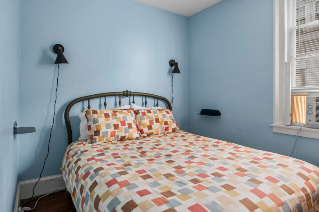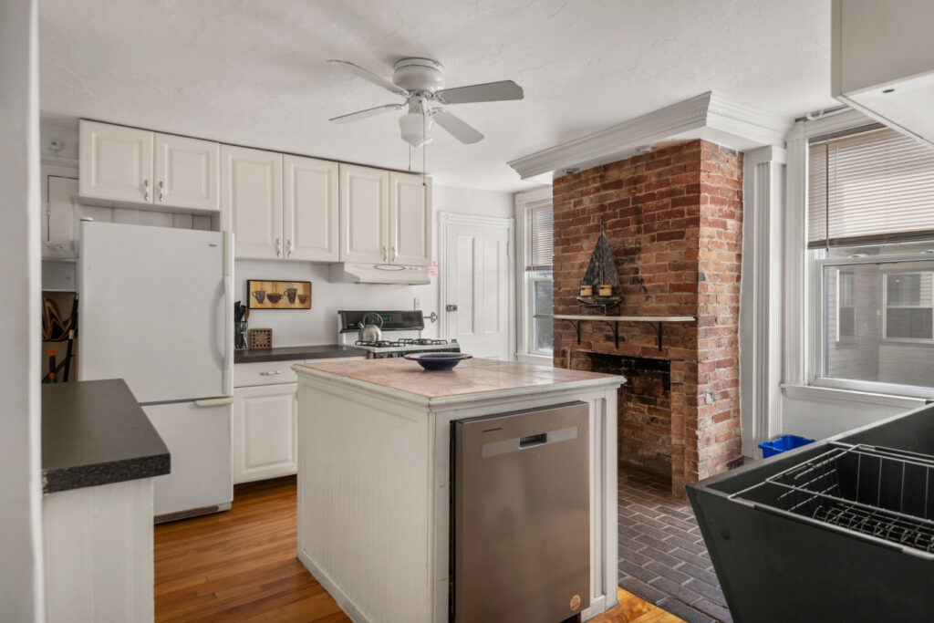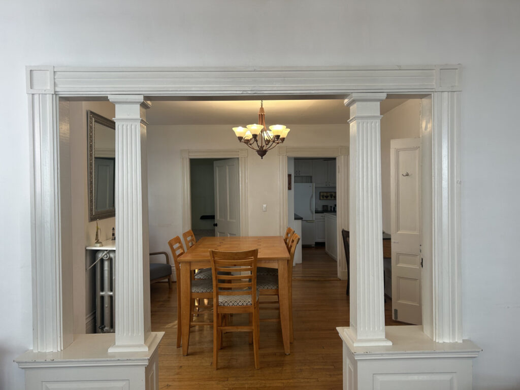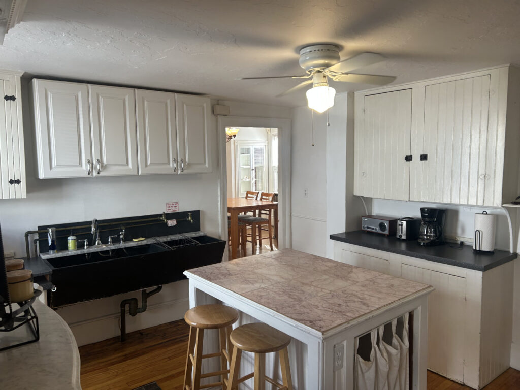 The apartment has several historic features and includes an elegant living room, dining room, and beautiful kitchen with slate sink, marble countertop island, and dishwasher. There are three very cozy bedrooms which include a queen bed, full bed and second queen bed. Simple bathroom with a shower/tub and pedestal sink.