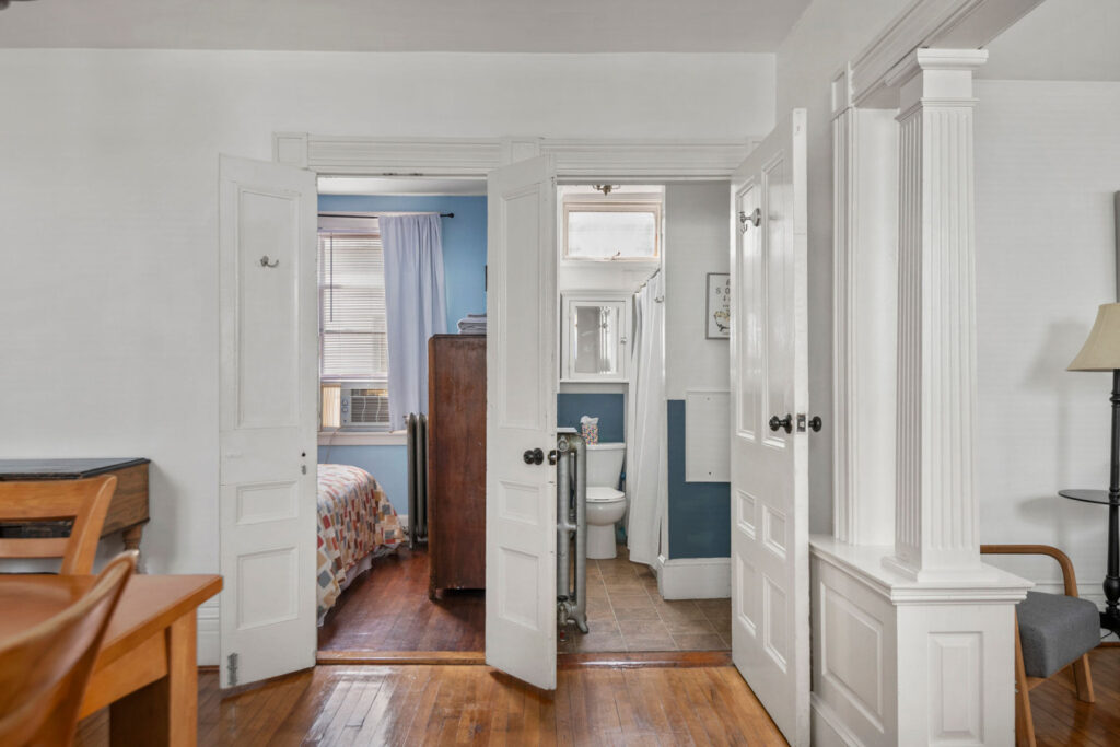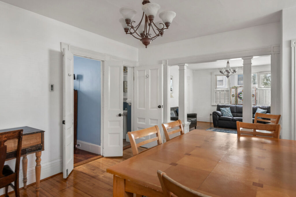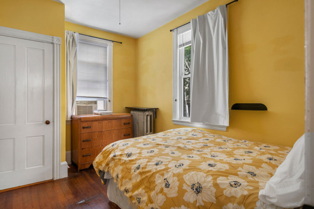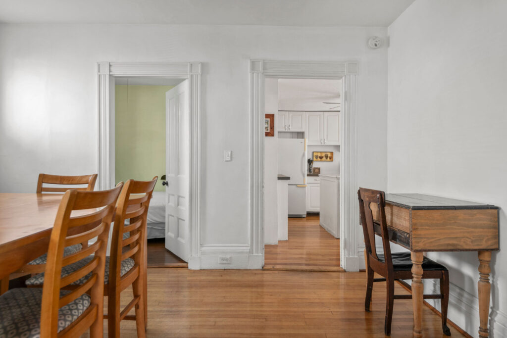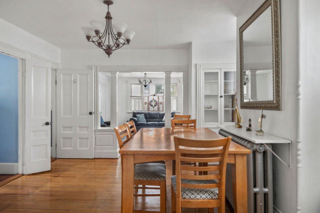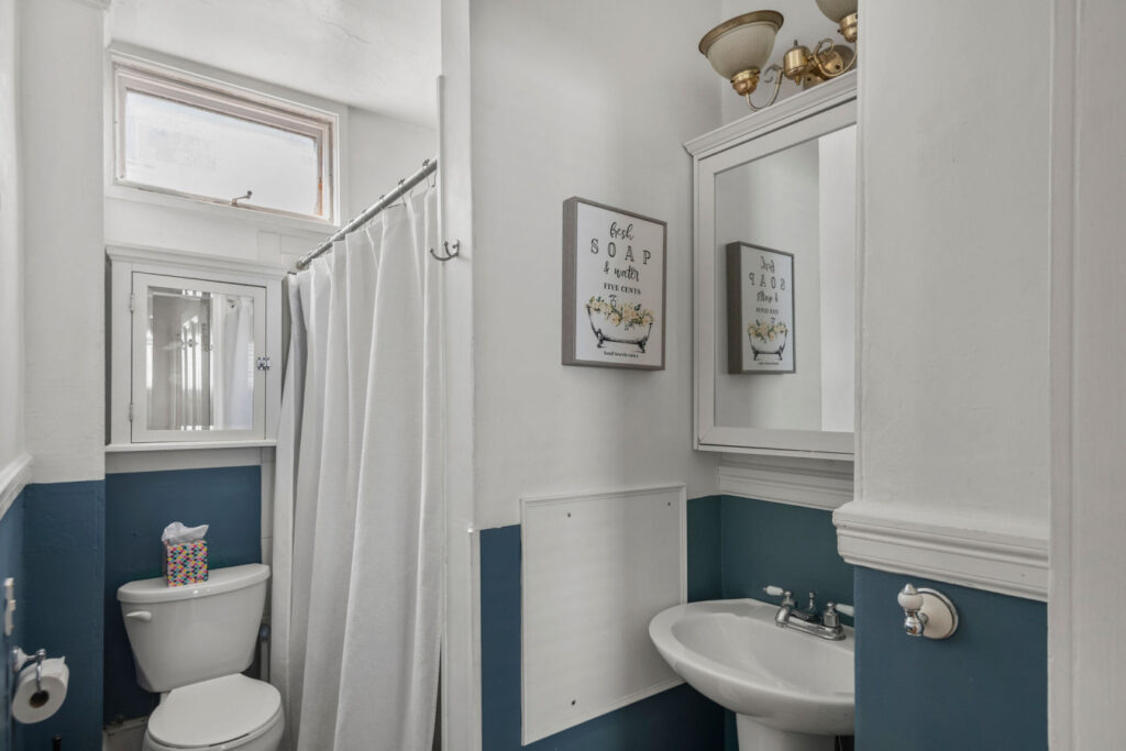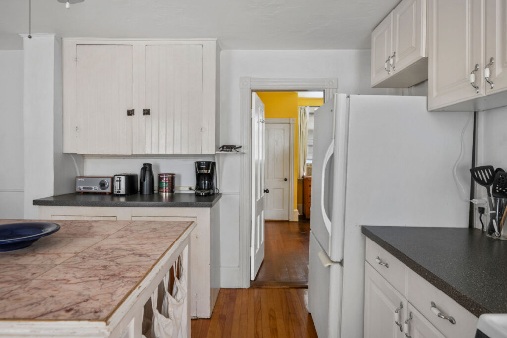 The apartment has several historic features and includes an elegant living room, dining room, and beautiful kitchen with slate sink, marble countertop island, and dishwasher. There are three very cozy bedrooms which include a queen bed, full bed and second queen bed. Simple bathroom with a shower/tub and pedestal sink.