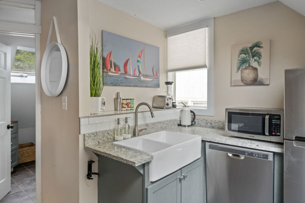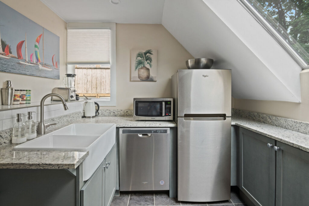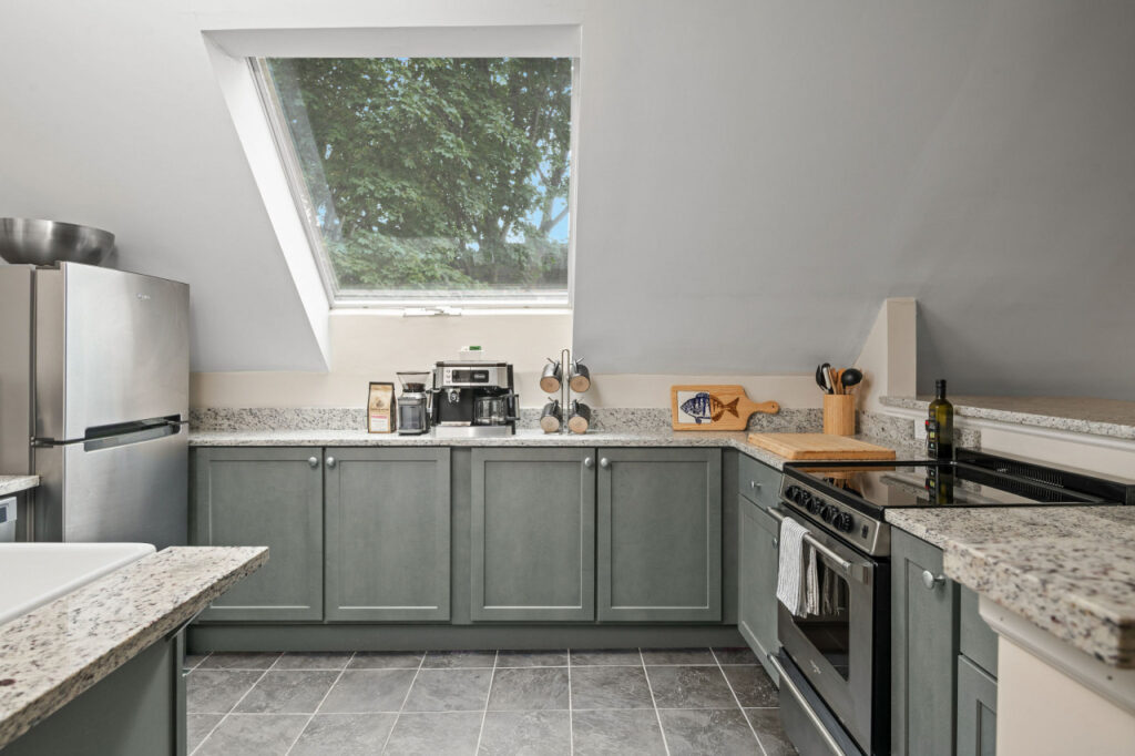 One of the home’s standout features is its generously sized, eat-in kitchen. Awash with sunlight streaming in from large windows, the kitchen is a hub of activity and a dream space for groups of all sizes. It is equipped with modern appliances and a spacious layout for you to cook your heart out.
