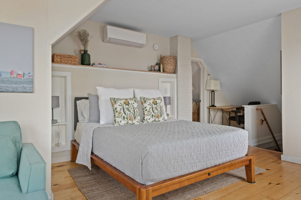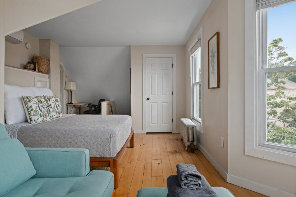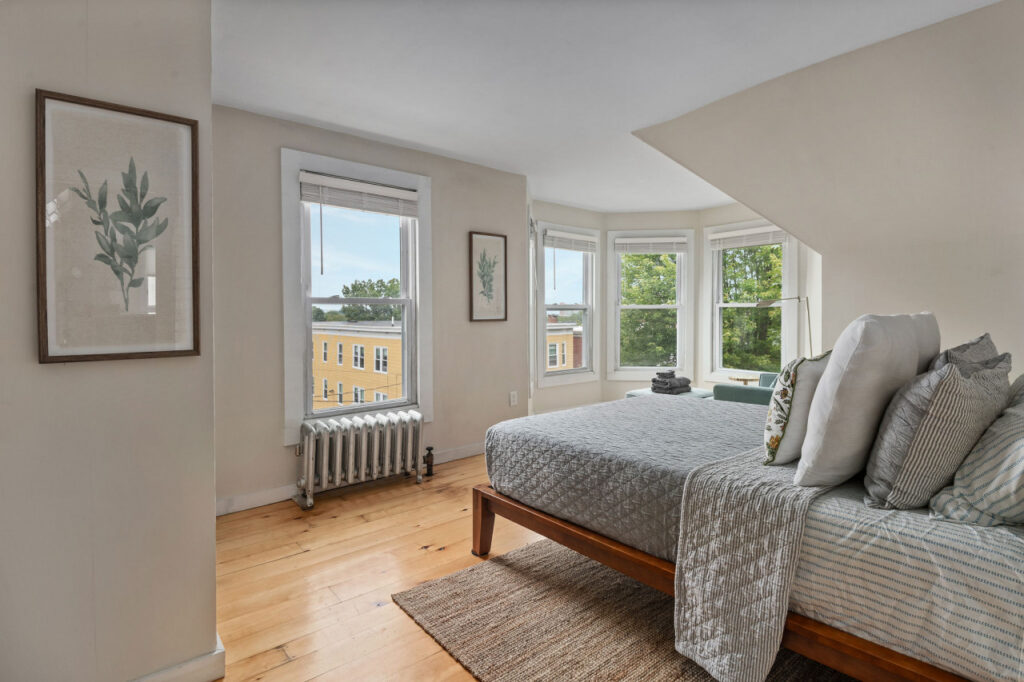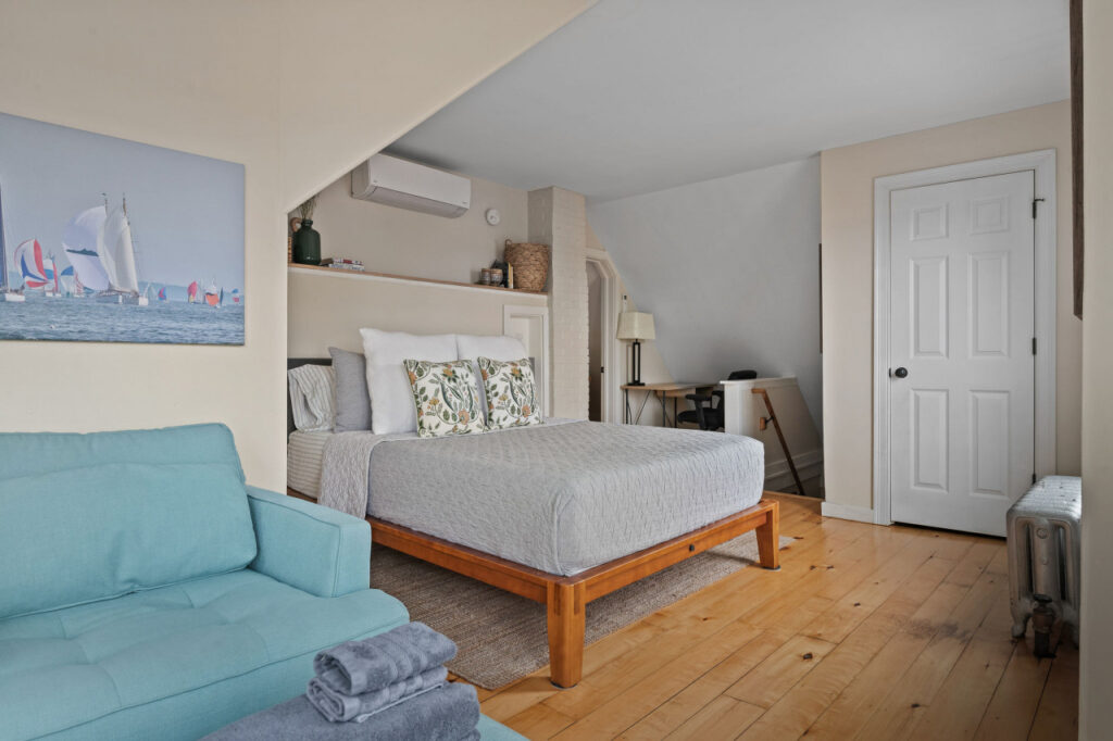 Discover the perfect urban sanctuary in our top-floor penthouse, nestled in Portland’s trendy West End. This historic gem boasts subtle Back Bay views, expansive windows, and chic interiors. Steps from eclectic shops, eateries, and cultural landmarks, this prime location balances relaxation and excitement. Unwind in the sophisticated living area, create culinary delights in the modern kitchen, and enjoy a restful night in the inviting bedroom. Fiber internet and private workspace included!