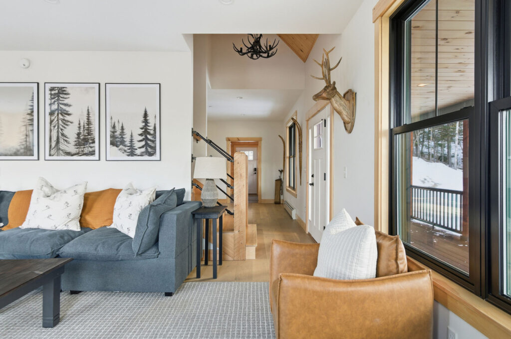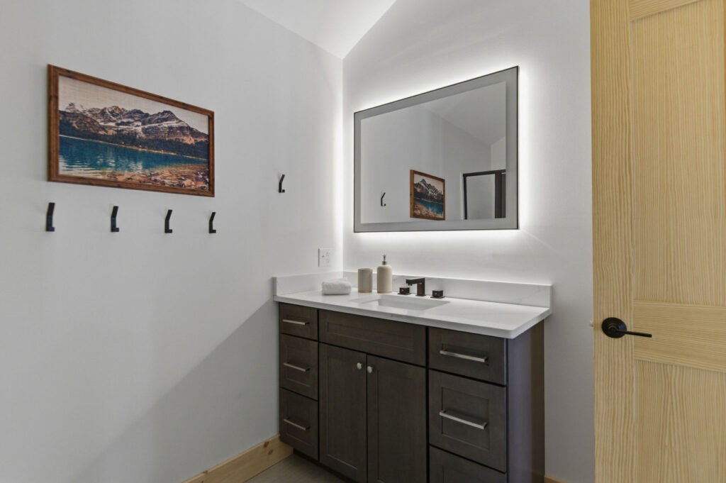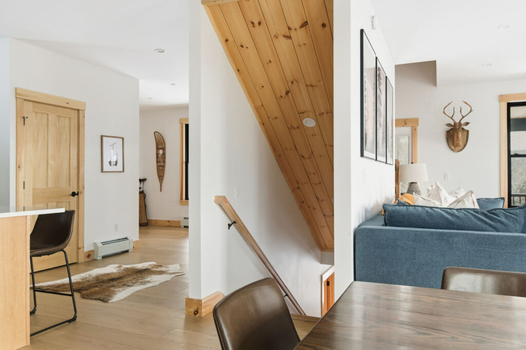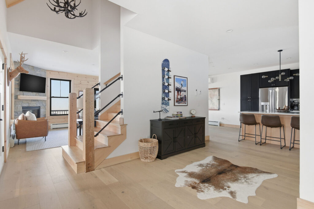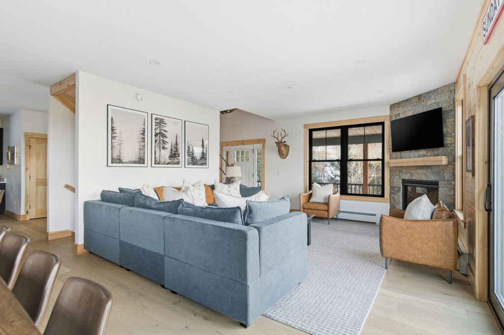 SPACE: Step inside to a bright, open-concept great room with huge mountain views, and a comfortable sectional perfect for gathering after a day on the mountain. The main living area includes a gas fireplace, dedicated dining space, and a well-appointed mudroom built for ski and gear storage.
