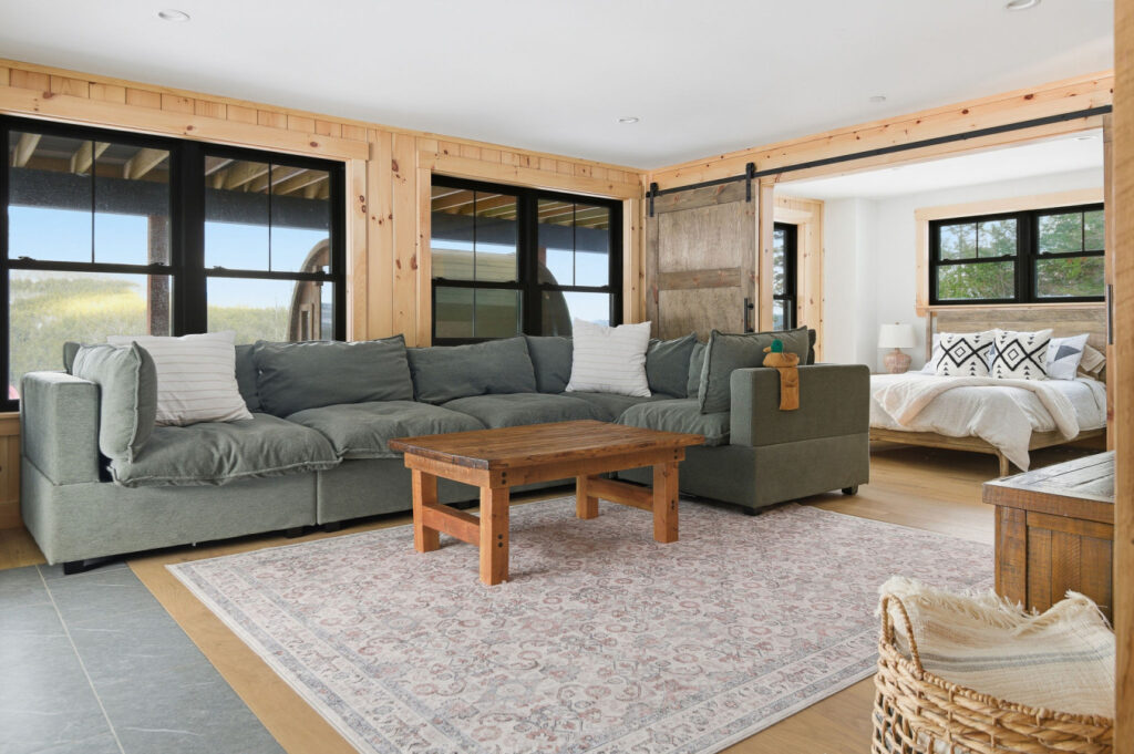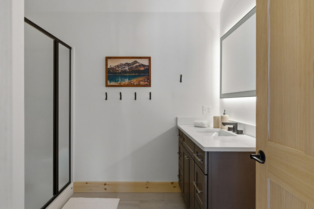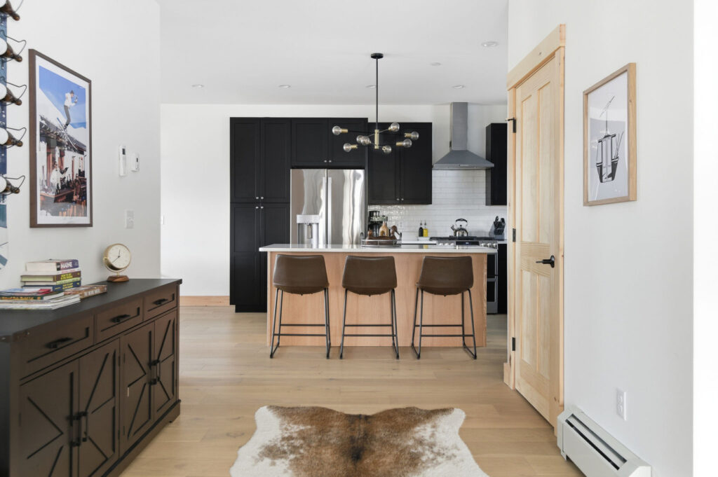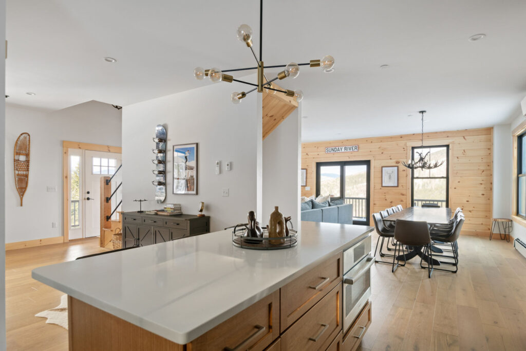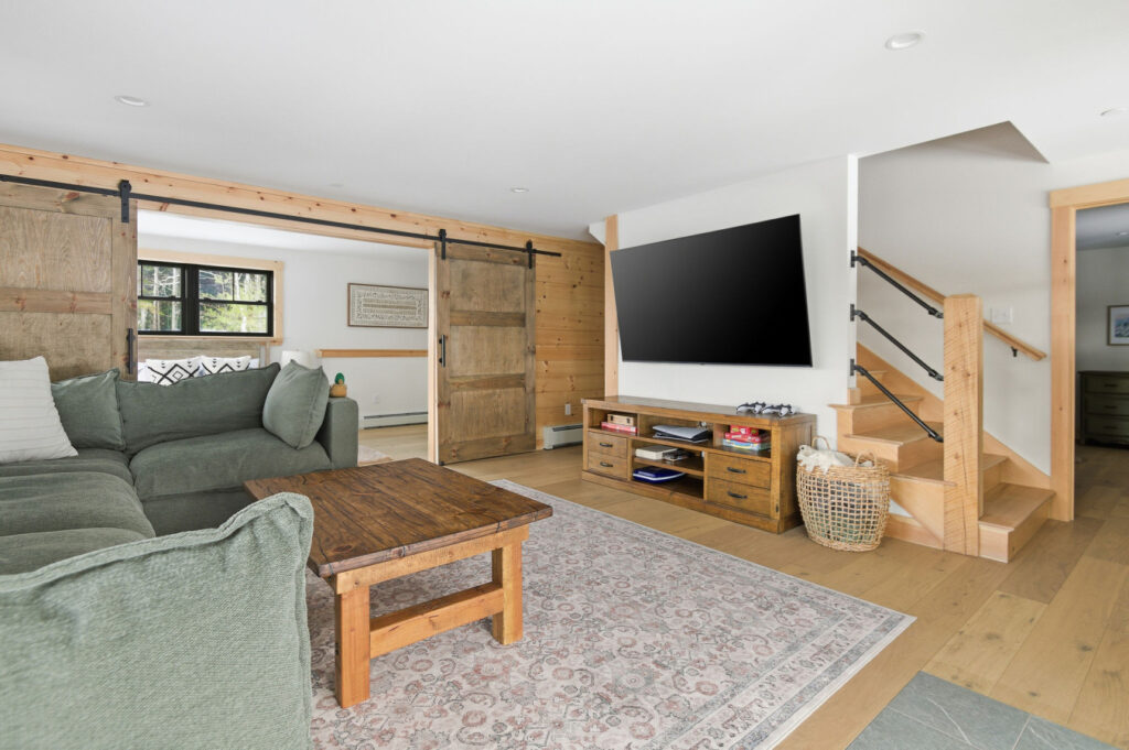 SPACE: Step inside to a bright, open-concept great room with huge mountain views, and a comfortable sectional perfect for gathering after a day on the mountain. The main living area includes a gas fireplace, dedicated dining space, and a well-appointed mudroom built for ski and gear storage.