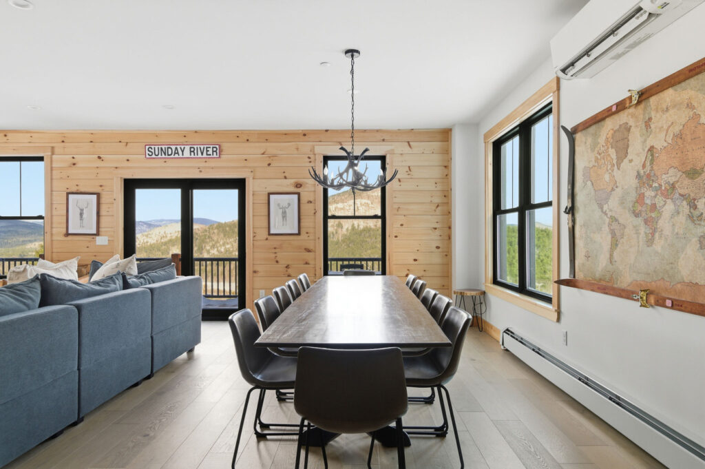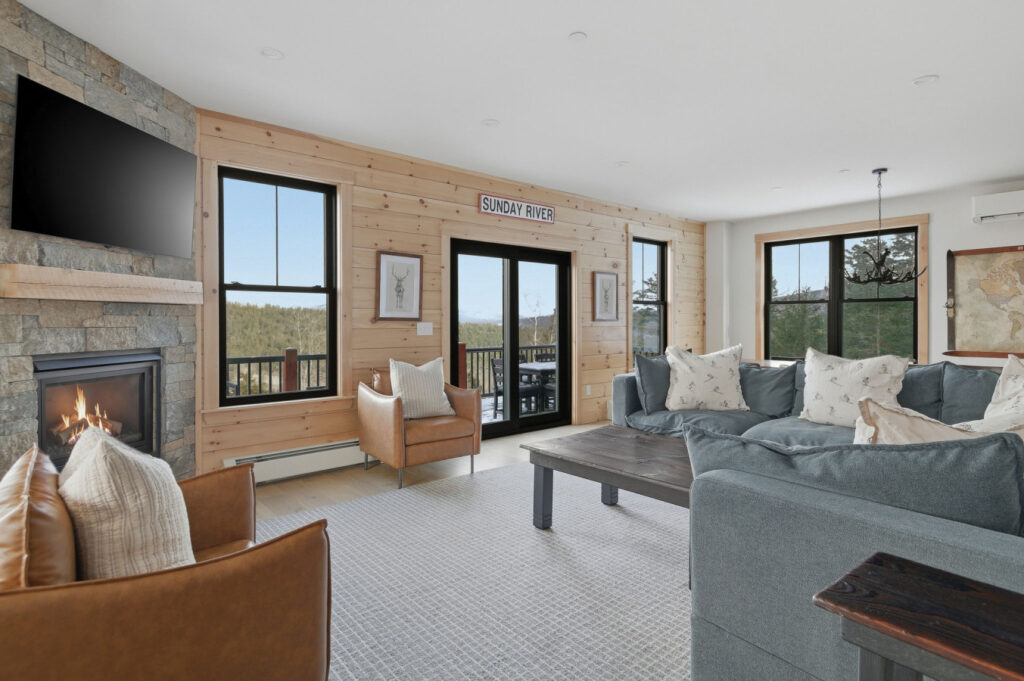 Welcome to the Ninth Peak, a brand-new (2025) luxury mountain retreat located just 5 minutes from Sunday River’s South Ridge Base Lodge. This modern 5-bedroom, 3.5-bath custom home was designed for groups, families, and year-round adventurers, offering space for up to 16 guests with big views from every room that rival any of Sunday River’s 8-peaks, but with way better amenities! Enjoy beautiful decor, vaulted ceilings, a cozy gas fireplace, a chef’s kitchen, spa, on a very private 5-acres.