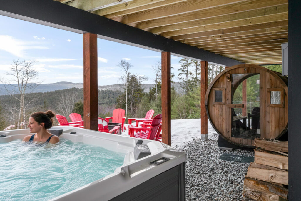 The fully stocked chef’s kitchen features quartz countertops, stainless appliances, island seating, grill, outdoor seating, and all cookware needed for group meals. Starlink Pro 1 gig wifi, double monitor and adjustable desk and office for work from home – PS5, Youtube TV, arcade, and board games included for fun – and high end jacuzzi hot tub spa and sauna for relaxation.