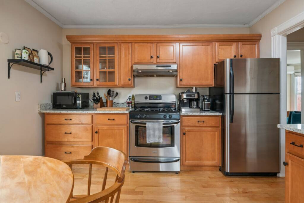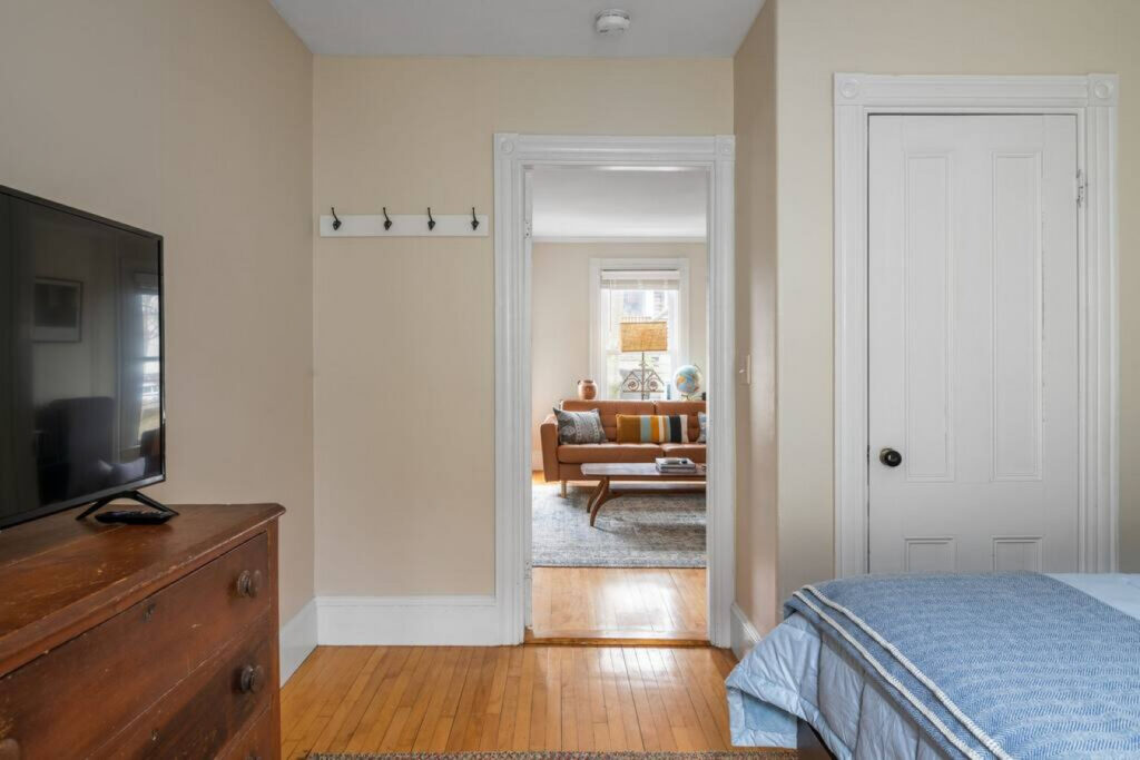 You’ll have the whole second floor to yourself, with private access to two bedrooms, one full bath, and a full kitchen. There is shared laundry in the basement, as well as a shared outdoor patio with grill and seating for seasonal use.